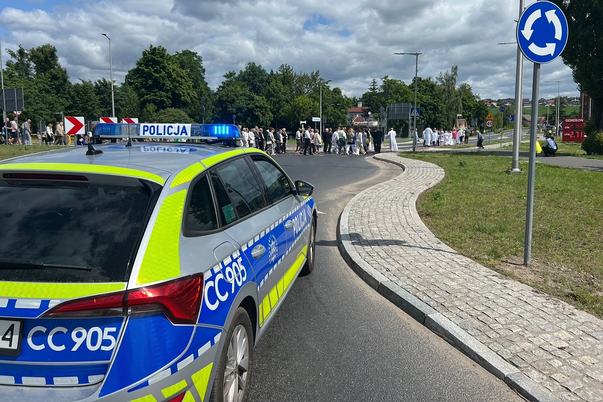 Policjanci z powiatu świeckiego, podczas pełnionej służby, zabezpieczali przemarsze procesji z okazji święta Bożego Ciała. Mundurowi dbali o bezpieczeństwo mieszkańców miast i wsi oraz pomagali kierowcom pokonać utrudnienia w ruchu.