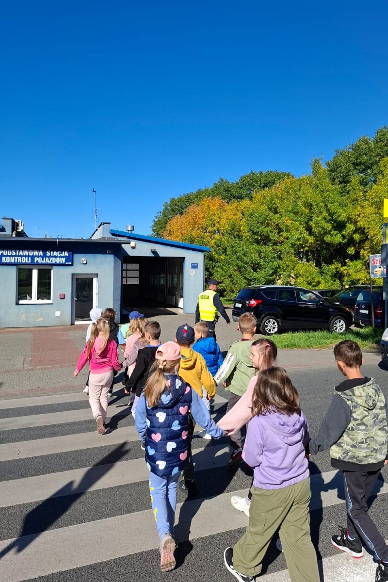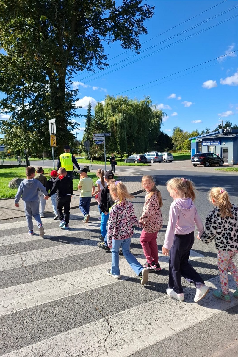 Po części teoretycznej dzieci wzięły udział w zajęciach praktycznych i pod czujnym okiem dzielnicowego ćwiczyły, jak powinno się bezpiecznie przechodzić na drugą stronę drogi.