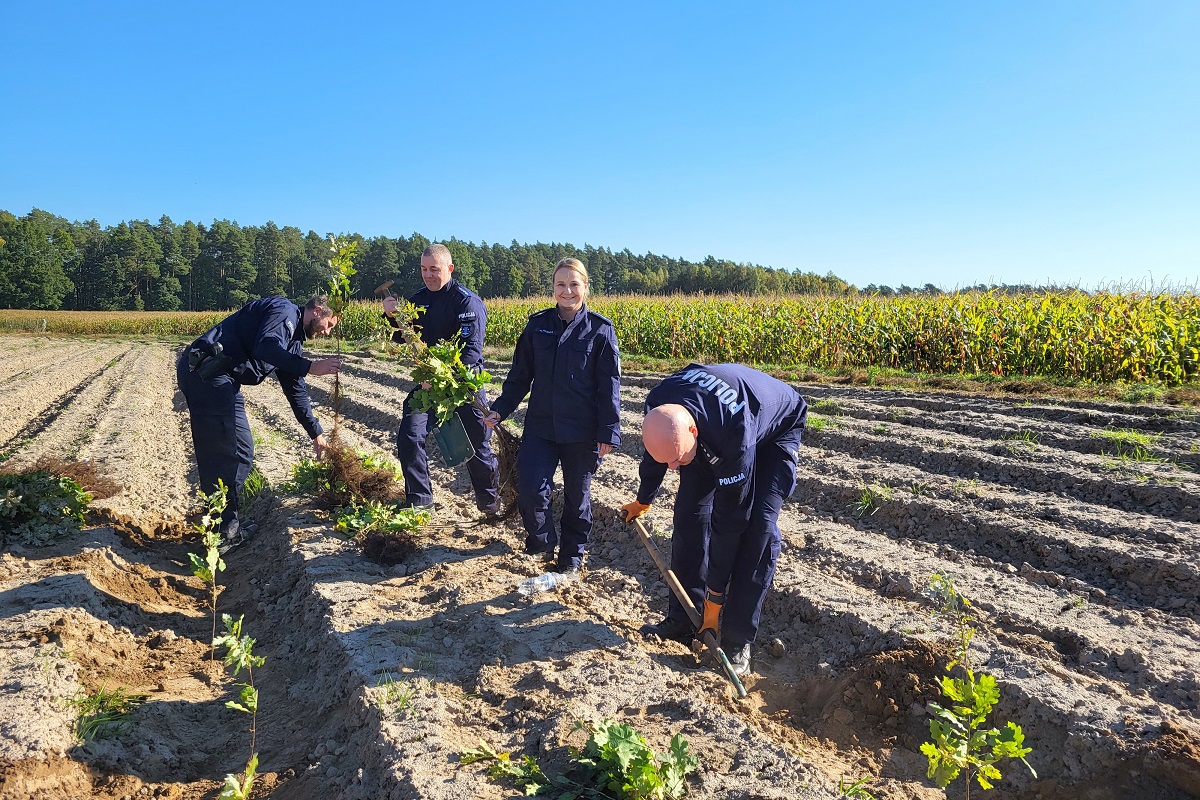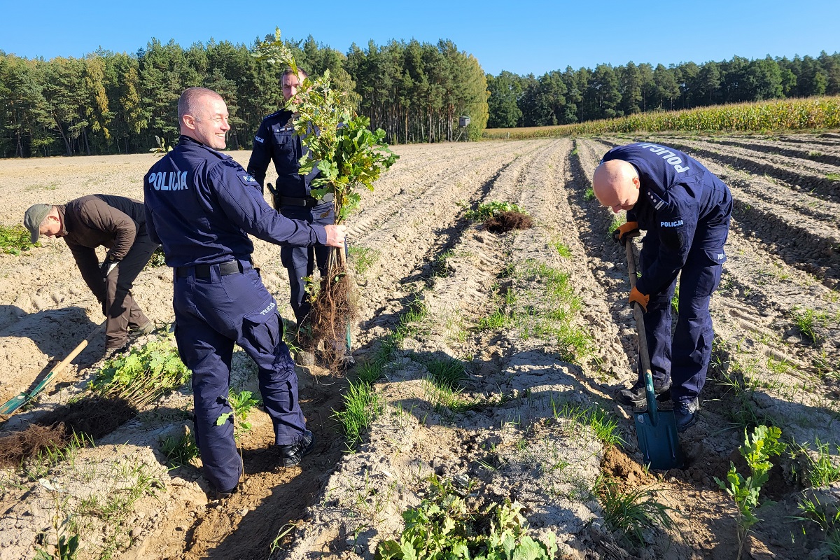 Dbając o ciągłość polskich lasów, Nadleśnictwo Trzebciny zorganizowało kolejne spotkanie aby wspólnie sadzić drzewka. Wśród zaproszonych gości byli również policjanci z powiatu świeckiego, którzy dołożyli swoją „cegiełkę” do budowy naszego wspólnego dobra jakim są lasy. Pod fachowym okiem leśników mundurowi wkopywali dęby szypułkowe na powierzchni, która dotychczas była rolą i tak też była użytkowana dotychczas.
