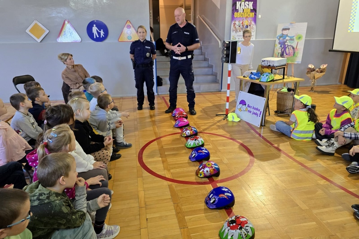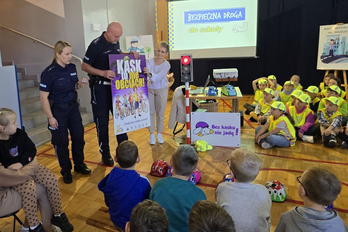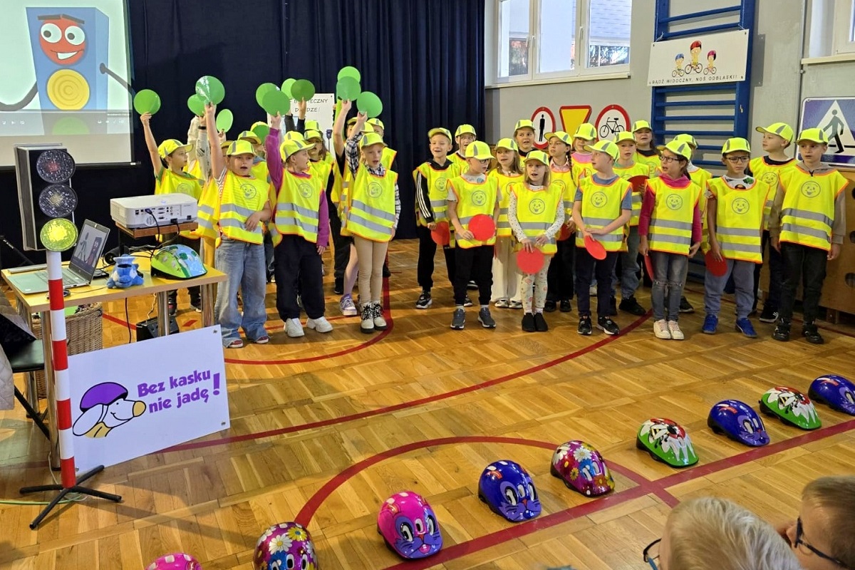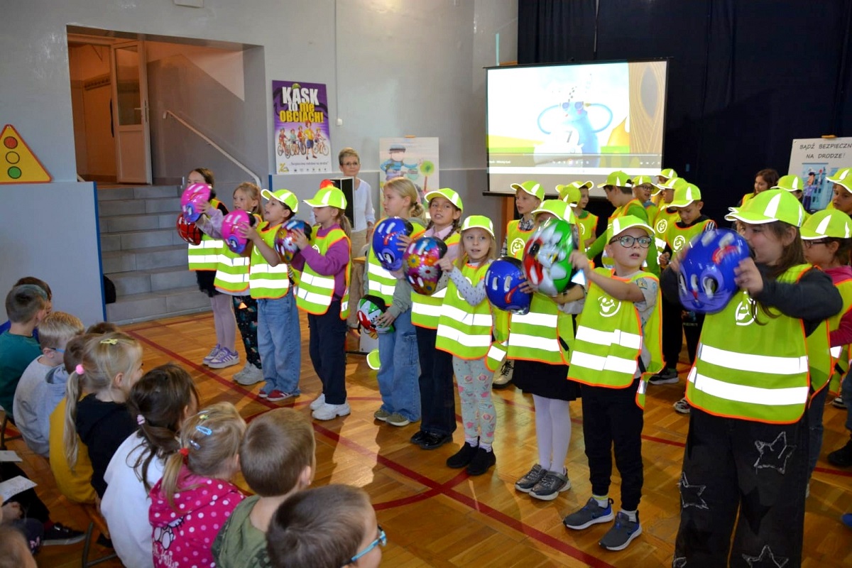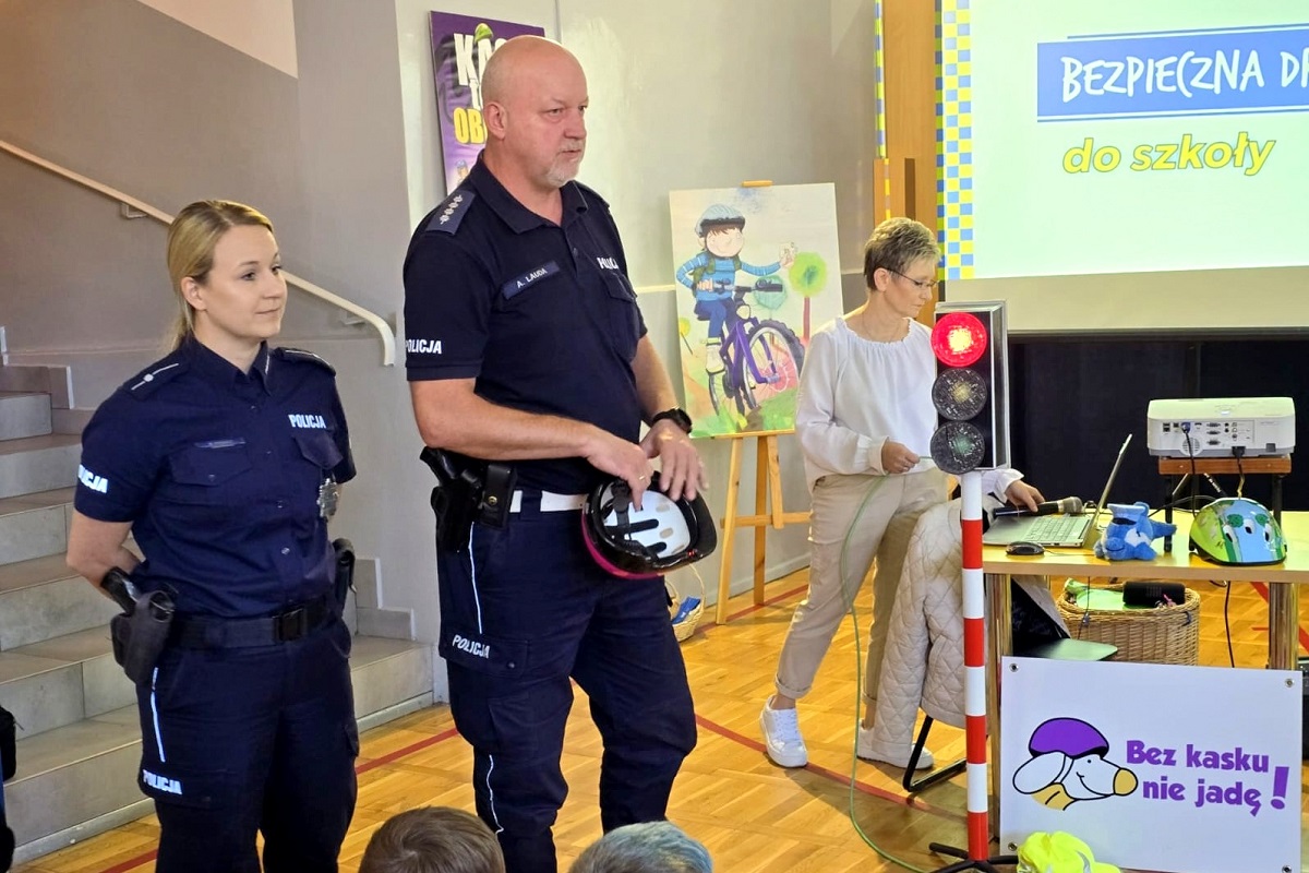 Po przedstawieniu policjant ruchu drogowego z komendy w Świeciu asp. szt. Arkadiusz Lauda oraz profilaktyk mł. asp. Małgorzata Frukacz przypomnieli uczniom zasady, którymi powinni się kierować, aby bezpiecznie poruszać się po drodze. Aby dalsza nauka „bezpieczeństwa” była dla najmłodszych szczególnie atrakcyjna mundurowi przekazali każdemu pierwszakowi ulotkę edukacyjną. Dzieci wyposażone zostały również w elementy odblaskowe, aby teraz mogły „świecić przykładam”.