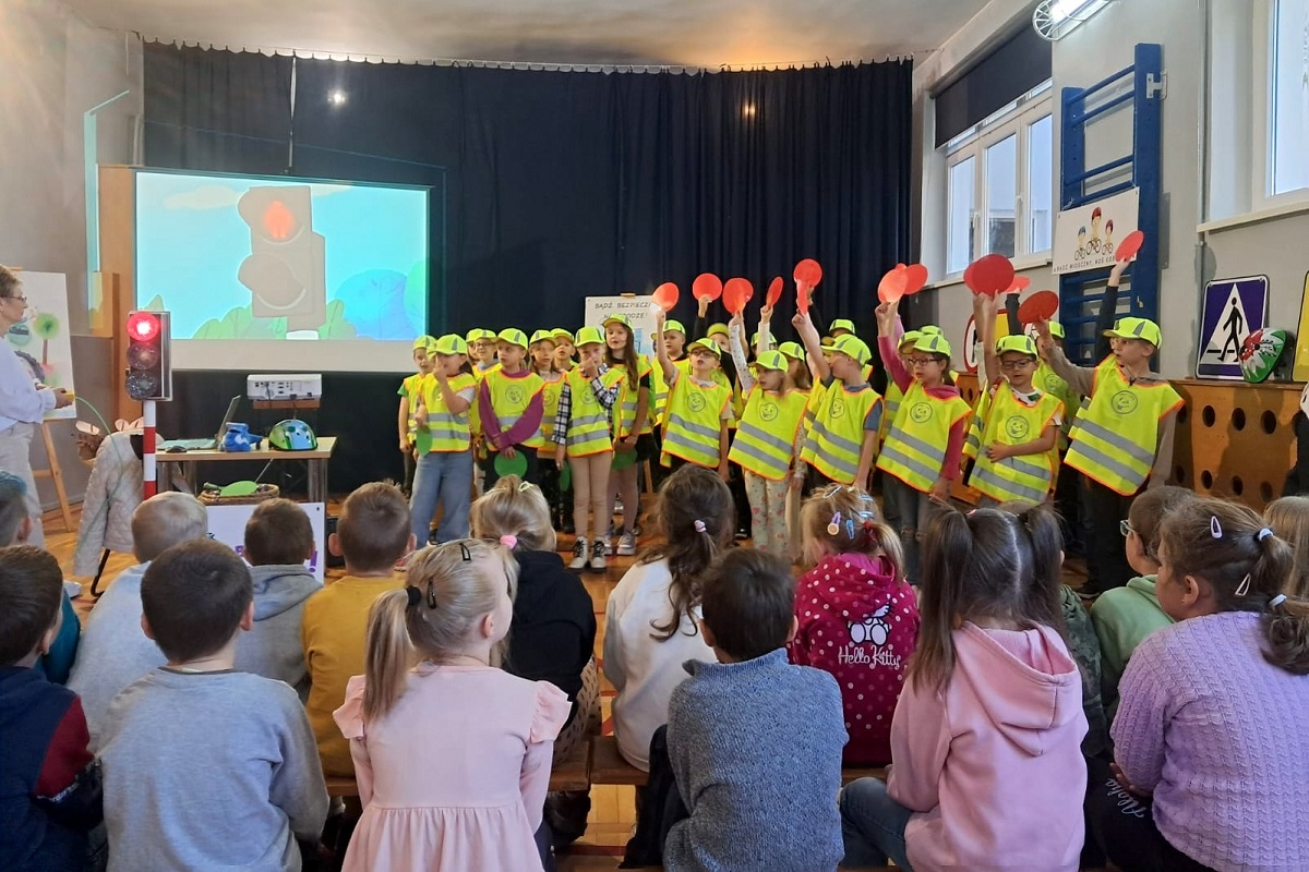 Sala gimnastyczna Szkoły Podstawowej nr 7 w Świeciu gościła uczniów klasy pierwszej. Dzieci oglądały przedstawienie dotyczące szeroko rozumianego bezpieczeństwa, w którym w roli aktorów wystąpili inni uczniowie. „Starszacy” zagrali w ramach działań „Bezpieczna droga do szkoły". Założeniem przedstawienia było przekazanie najmłodszym w sposób zabawny zasad zachowania podczas drogi do szkoły i powrotu do domu.
