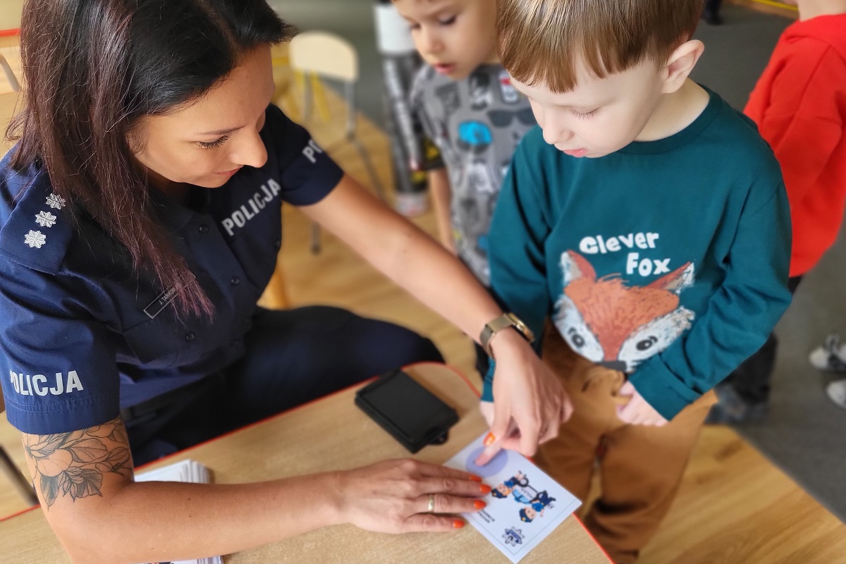 Na zakończenie, każdy z maluchów miał okazję zrobić na pamiątkę swój odcisk linii papilarnych, a policjanci wręczyli im odblaskowe zawieszki.