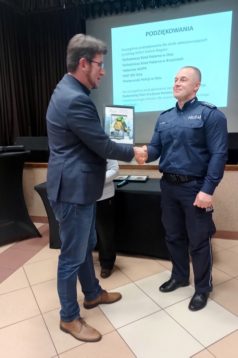 Na ręce kierownika Posterunku Policji w Osiu asp. szt. Tomasza Kowalonka wpłynęły podziękowania od organizatorów XXXVI Oskiego Biegu im. Krzysztofa Malinowskiego, który odbył się na terenie gminy. Nad bezpieczeństwem uczestników tego wydarzenia czuwali mundurowi z miejscowego posterunku. Słowa uznania za współpracę i troskę o mieszkańców są zawsze największą motywacją do dalszej służby.