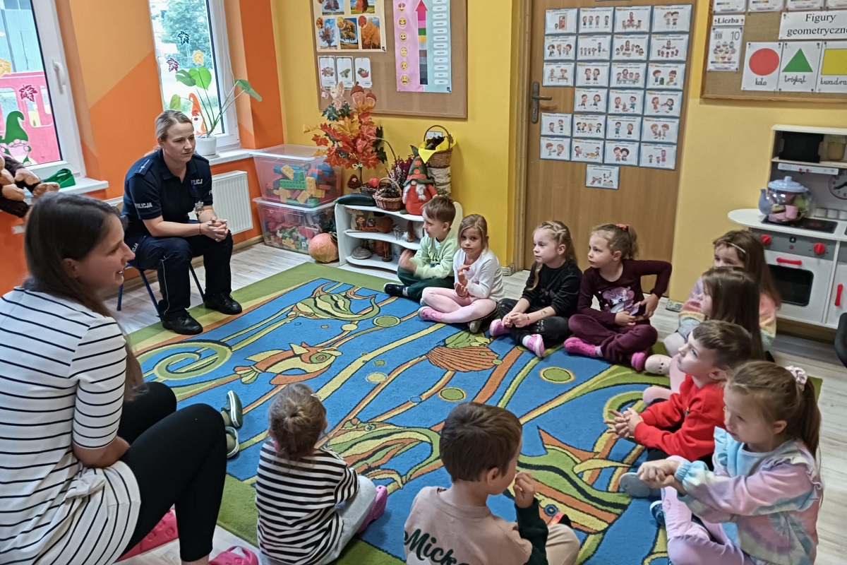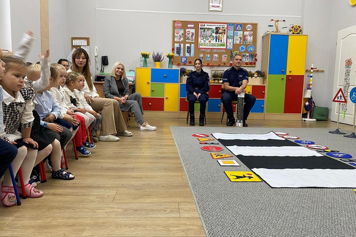 Podczas spotkania mundurowi w przystępny i atrakcyjny sposób przekazali dzieciom najistotniejsze informacje dotyczące ich bezpieczeństwa w różnych sytuacjach. Głównym tematem były zasady ruchu drogowego. Policjanci dokładnie wytłumaczyli, jak prawidłowo przechodzić przez jezdnię, co oznaczają kolory na sygnalizatorze oraz dlaczego tak ważne jest noszenie odblasków, zwłaszcza po zmroku.
