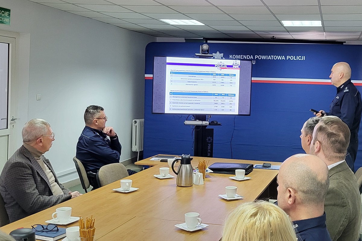 Podczas odprawy omówione zostały zagadnienia związane z bezpieczeństwem w ruchu drogowym. W minionym roku na drogach powiatu świeckiego odnotowano 1094 kolizji. W porównaniu do roku poprzedniego nastąpił wzrost o 27 zdarzeń. Wrosła także liczba wypadków drogowych z 25 w 2024r. do 38 w 2025r. W analizowanym okresie, w wypadkach drogowych 12 osób poniosło śmierć. Liczba ta wzrosła o połowę. Najczęstszą przyczyną zdarzeń drogowych było niedostosowanie prędkości do warunków panujących na drogach, nieudzielenie pierwszeństwa przejazdu przez kierujących oraz nieprawidłowe cofanie.
