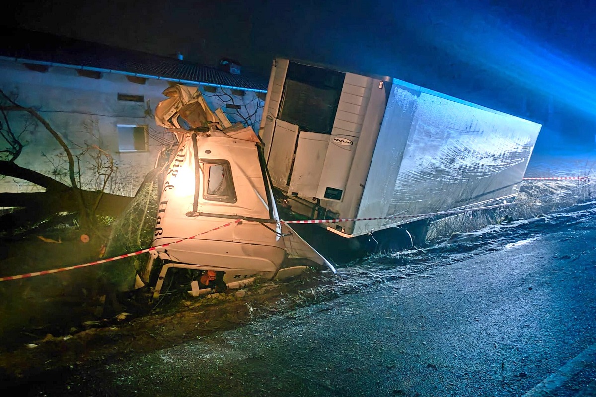 W sobotę (7.02.26), tuż przed godziną, 2:00 dyżurny z komendy w Świeciu otrzymał zgłoszenie o bardzo groźnie wyglądającym zdarzeniu drogowym w miejscowości Stążki (gmina Świekatowo). Przybyli na miejsce policjanci zastali samochód ciężarowy marki Scania w rowie, a 62-letniego kierowcę obok pojazdu. Mundurowi ustalili, że mężczyzna zjechał z drogi do rowu i uderzył w drzewo. Kabina pojazdu była doszczętnie zniszczona.