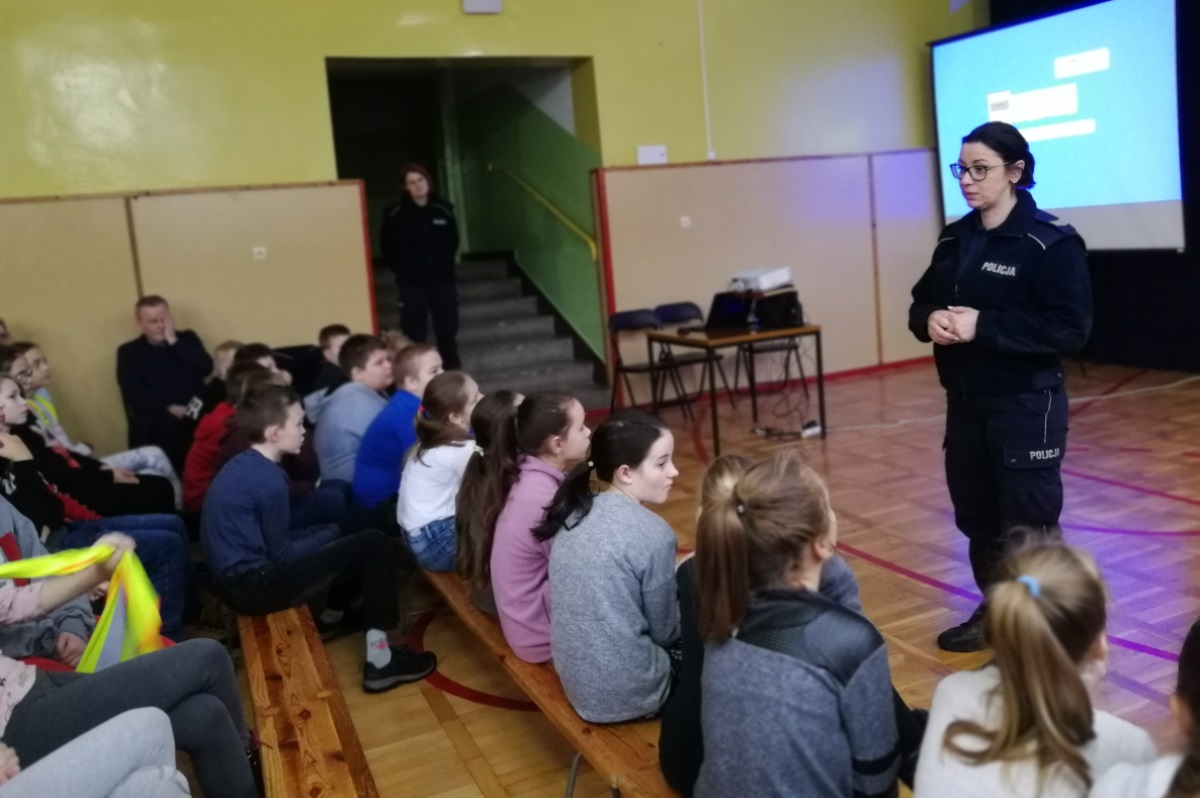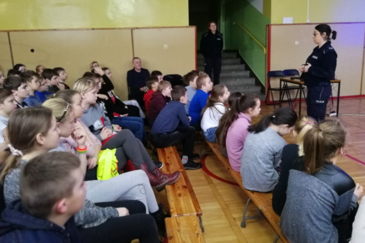 Działając na rzecz poprawy bezpieczeństwa uczestników ruchu drogowego, policjantki zespołu ds. nieletnich z komendy w Świeciu spotkały się z uczniami Szkoły Podstawowej nr 7 aby porozmawiać o zagrożeniach jakie mogą pojawić się na drodze w wyniku niezachowania szczególnej ostrożności przez pieszego przechodzącego przez jezdnię.