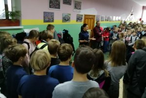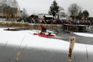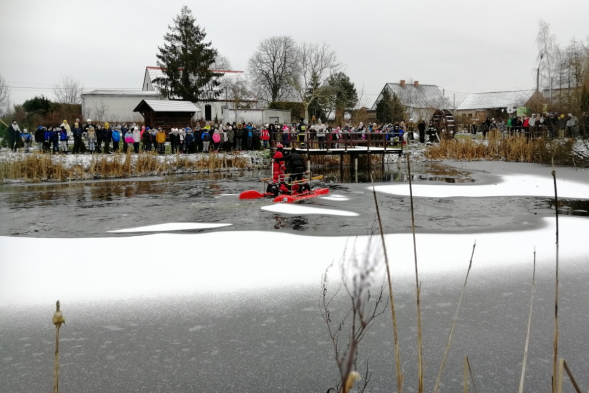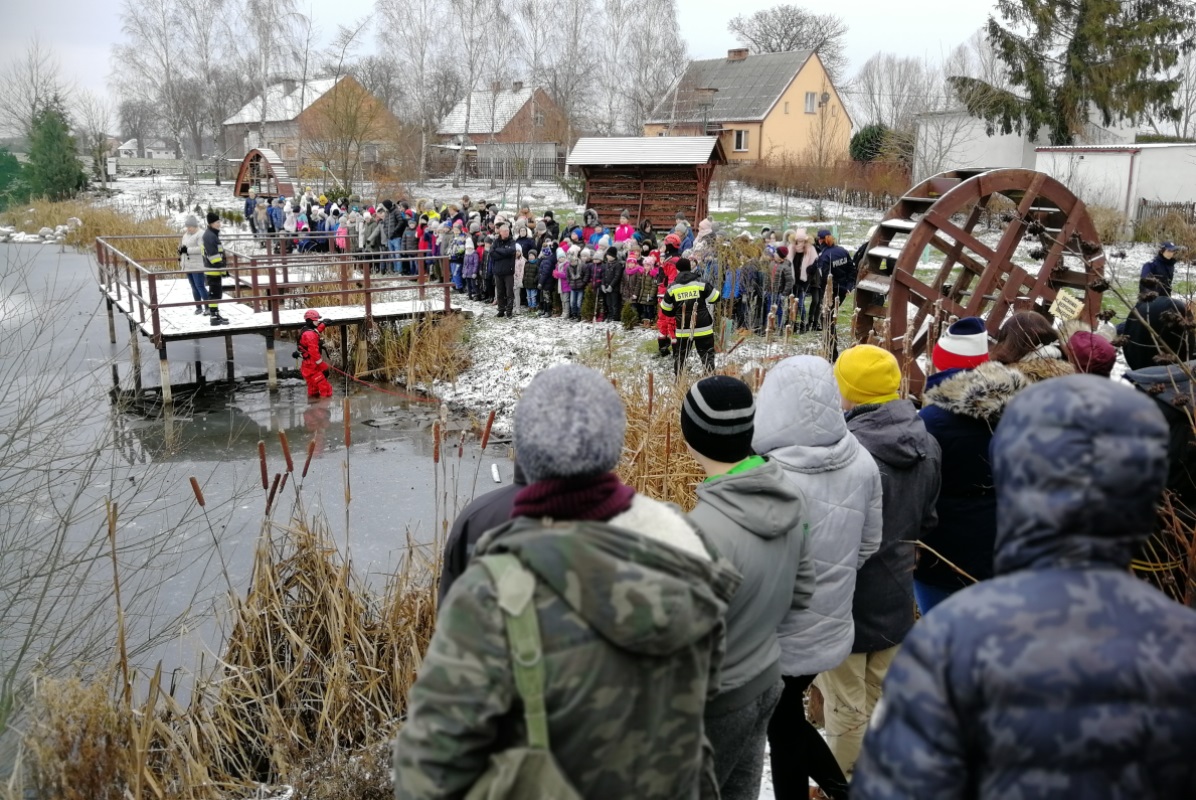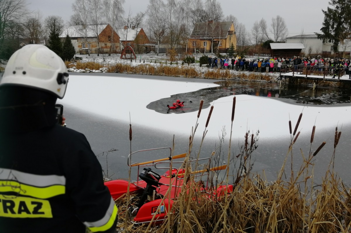 W tym roku mundurowi przygotowali dla słuchaczy niespodziankę. Na mieszczącym się w pobliżu szkoły stawie, przygotowali pokaz ratownictwa lodowego. W tym czasie strażacy przestrzegali dzieci przed skutkami nieodpowiedzialnych zabaw. Mówili m.in. o tym jak groźny dla zdrowia może być dym oraz o tym, że zabawy na cienkim lodzie mogą mieć niebezpieczne dla życia konsekwencje.